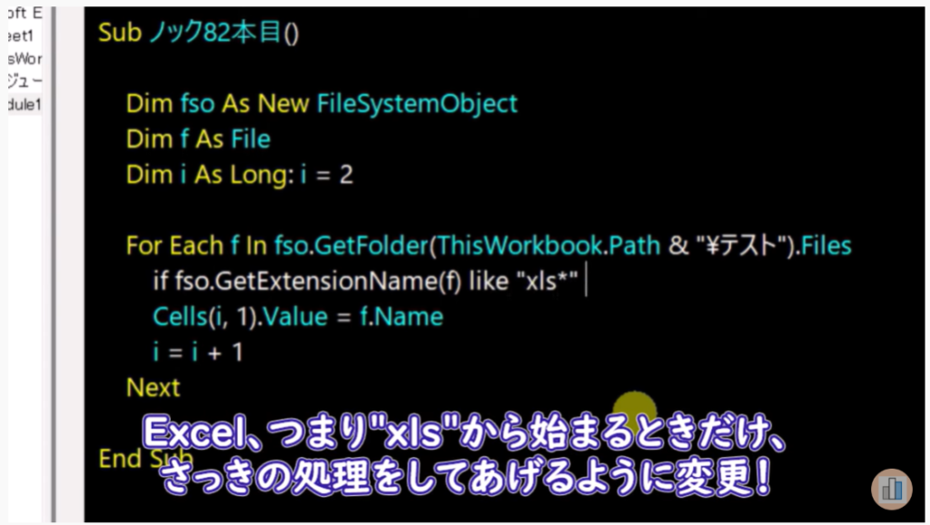 全ファイルをループする中、Excelファイルのみに処理する方法については、